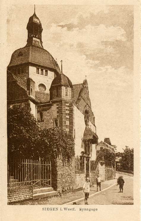 Siegen is a city in northwestern Germany on the Sieg River. Depicted in the postcard below is the synagogue in Siegen. Also below, is a photo from the Yad Vashem archives showing flames pouring out of the synagogue during Kristallnacht.